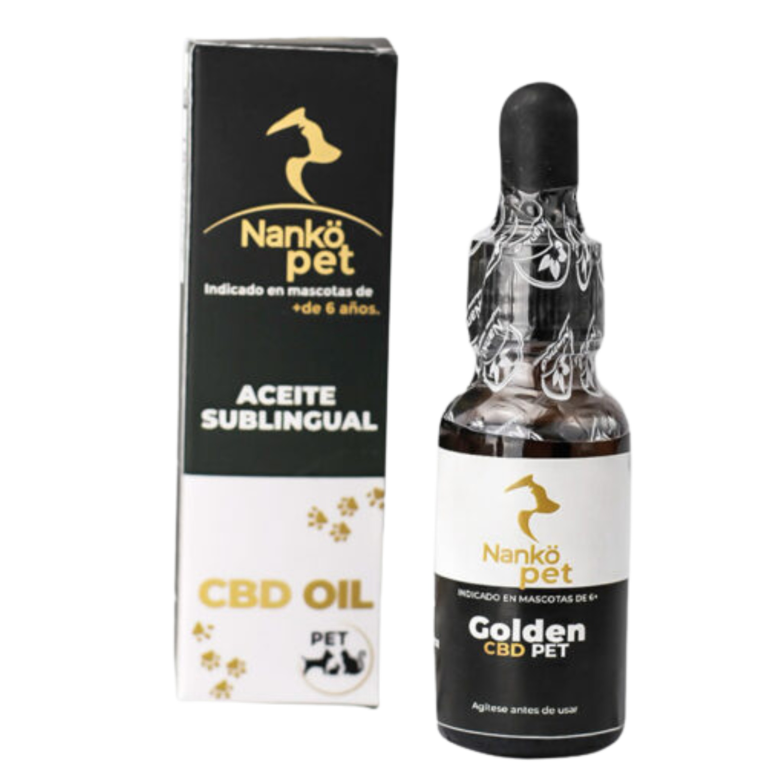 Nuestro aceite Golden PET creado especialmente para mascotas de 6 años en adelante con mayor concentración de cannabis medicinal y adicionado con kalanchoe para fortalecer la salud en su edad adulta.